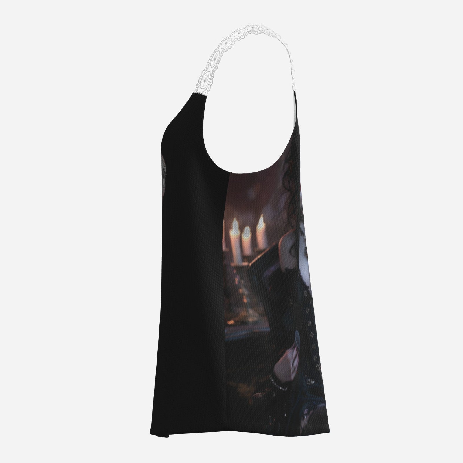 Women's Lace Shoulder Strap Tank Top-Imitation Cotton. The fabric of this T - back is not prone to pilling, and it is soft, comfortable, breathable and sweat - wicking. The laser cutting technology makes the fabric comfortable, soft, smooth and delicate. It is very suitable for wearing in summer.