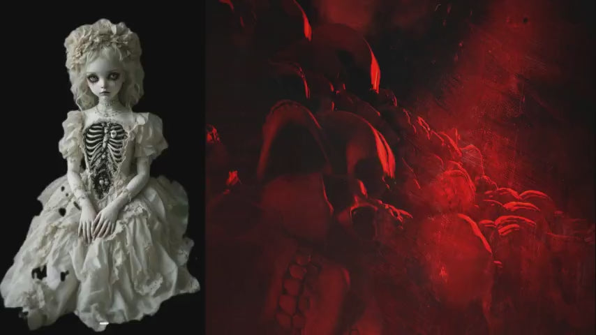 With exposed ribs carved from ivory and a music box heart that plays a broken lullaby, Belle dances slowly in empty rooms. She was made for a girl who died too soon... and she’s still waiting for playtime to resume!