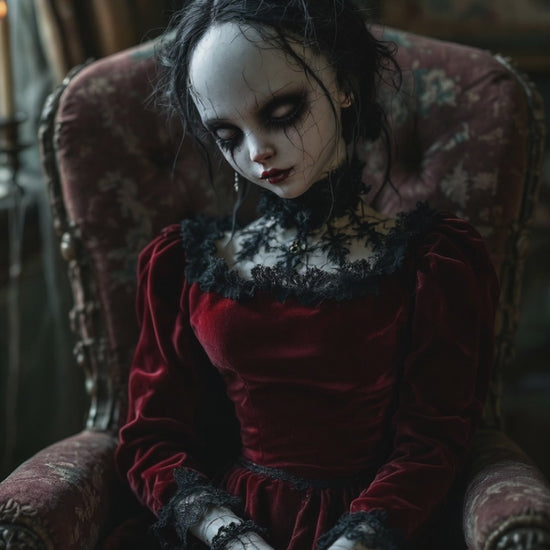 Crafted from mourning velvet and gifted to a grieving mother in 1873, Velvet Agnes was meant to be a comfort—but became something else entirely. Her eyes were sewn shut to shield her from sorrow, yet she hears everything. Secrets. Confessions. Final breaths.